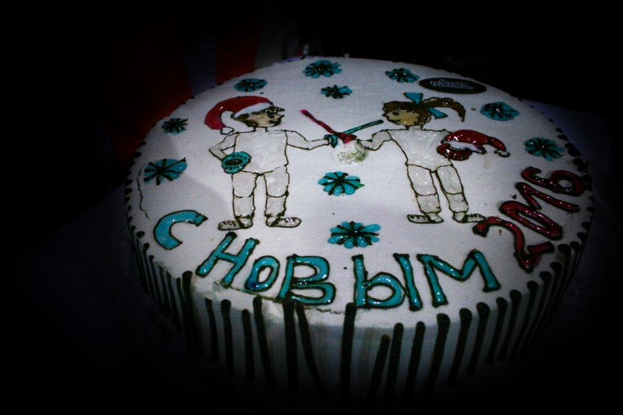После такого количества боев, испытаний и проверок участники утомились, и сладкое угощение было очень кстати. Новогодний торт с логотипом клуба был доставлен прямиком из фехтовальной фабрики настоящих фехтовальных тортов фехтовальным поваром специально для праздника.